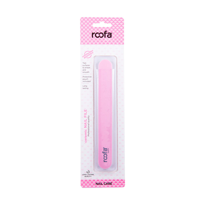 Roofa Spain's Ceramic Nail File delivers a gentle yet effective finish while reducing splitting and peeling.Features:Hygienic and washableSmooths edges without roughnessLong-lasting ceramic surface